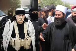 - شهدت منصات التواصل السورية خلال اليومين الماضيين انتشار مقطع فيديو يُظهر رجل الدين الدرزي الشيخ رائد حكمت المتني وهو يتعرض لحلق لحيته وشاربه على يد عناصر قيل إنهم تابعون لمليشيا “الحرس الوطني” الموالية لحكمت الهجري أحد شيوخ الطائفة الدرزية في السويداء جنوبي البلاد. وفي تطور مأساوي، نشرت صفحة “السويداء 24″ على مواقع التواصل خبرا أفادت فيه بأن شهود عيان أكدوا أن سيارة تابعة لـ”الحرس الوطني” ألقت بعد منتصف ليل الاثنين الأول من ديسمبر/كانون الأول الجاري جثة أمام بوابة المشفى الوطني بمدينة السويداء، وتبين أن الجثة تعود للشيخ المتني الذي اعتُقل قبلها بيومين في مدينة السويداء على يد عناصر نفس المليشيا. ووفق المصدر ذاته، كانت الجثة تحمل آثار تعذيب شديدة في مختلف أنحاء الجسم، إضافة إلى حلق كامل لحيته وشاربه. كما أُلقيت جثة ثانية أمام المشفى الوطني في السويداء تعود للشيخ ماهر فلحوط الذي اعتُقل مع المتني في اليوم نفسه.
