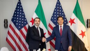 • بعدما وصل وزير الخارجية السوري أسعد الشيباني إلى مقر مؤتمر ميونخ للأمن، للمشاركة بأعمال دورته الثانية والستين، التقى بوزير الخارجية الأميركي ماركو روبيو. وجرى خلال اللقاء بحث أبرز التطورات المحلية والإقليمية مع التأكيد على وحدة سوريا وسيادتها وسلامة أراضيها. كما أكد الجانب الأميركي على دعم الولايات المتحدة للحكومة السورية واتفاق الاندماج الأخير مع قوات سوريا الديمقراطية، وجهود الدولة السورية في مكافحة تنظيم داعش.